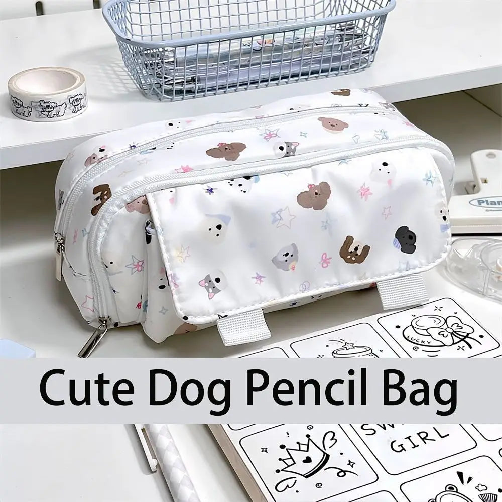 Cartoon Capybara Dog Cat Pencil Case Canvas Large Capacity Pen Bag Stationery Storage Pouch Office School Supplies Gifts